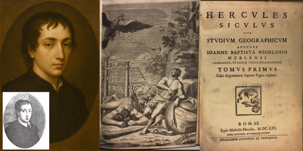 Антверпен: In aedibus Ioannis Steelsii, MDLVII (1557). - Николозио, Джованни Баттиста (Giovanni Battista Nicolosi, 1610–1670). Hercules Siculus, sive Studium Geographicum. Tomus 1/2 [«Геркул Сицилийский, или географическое исследование. Том 1 и 2»]. Рим: Typis Michaelis Herculis, 1670 — 1671.